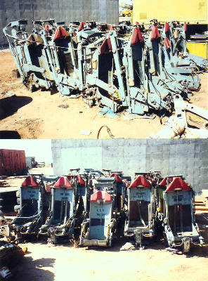 Left: B-52 Stanley downward ejecting seat. Right: Seats from SALT II dismantled B-52s